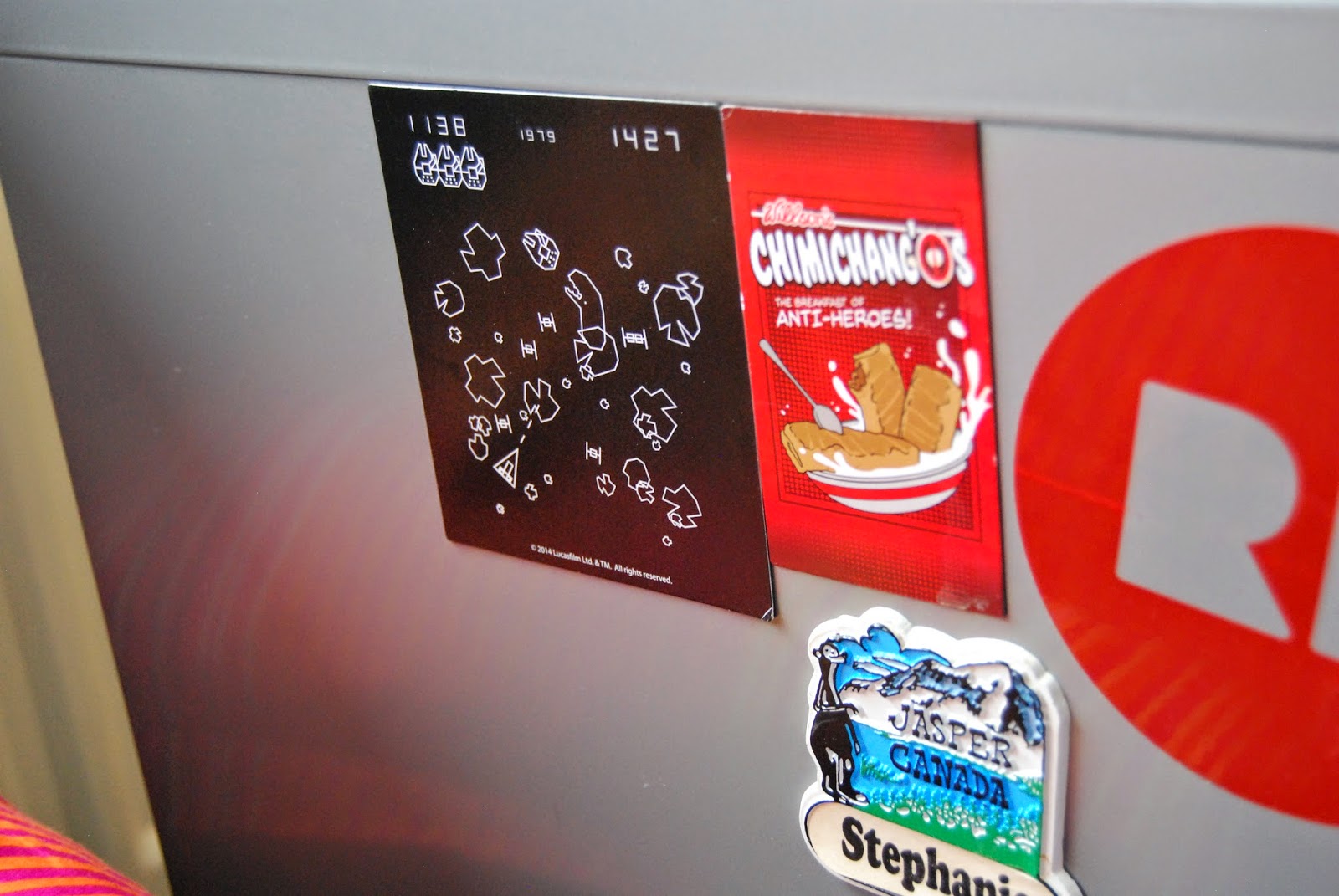 Once again, a magnet was thrown into the box and this time it's a Star Wars magnet and the picture is similar to that of a retro arcade game which is awesome aesthetically because I like that graphic design style and it reminds me of Tron (the original) and old games I used to play when I was a kid. Look at it, happy sitting there on my bedside table next to Deadpool